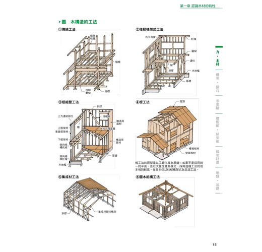 對應章節木材特性、結合部位的搭接與接頭工法、木造的建築法規