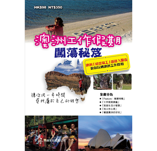 在專題介紹上,本書更網羅眾多實用資訊,包括到埗必做三件事、十個工作假期必裝APPS、十句澳洲常用澳洲俚語、 十個澳洲必去景點、十種澳洲特色食物、起居生活小智慧等。
