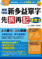 新多益考試的時間有限,要在有限時間內把一百題的閱讀測驗寫完,除了平時累積的單字量之外,商業類的單字也是必須掠取的重點。本書針對NEW TOEIC 設計了十大章節,內容包含了新多益考試最常出現的主題細分成五十個單元。熟練這五十個單元裡出現的單字,並先讓自己利用技巧記住字首和字根後,就會發現在新多益成績突飛猛進喔!跟著本書先拆字後背單字,有系統的記憶新多益的單字,相信你一定能交出一張漂亮的新多益成績單!