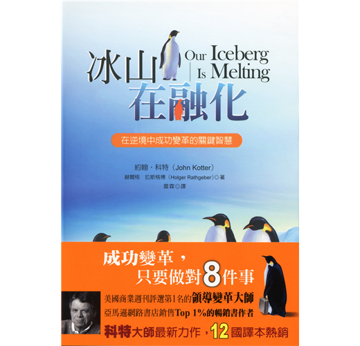 「這是我所讀過的書中,訊息最豐富、最淺顯易懂的一本。管理階層遇到的最大問題之一就是,『什麼問題?我沒發現有什麼問題?』作者用一座融化的冰山和一隻堅定的企鵝來揭示這個問題,實在是天才之作。」──TTP通信公司產品營銷總監 戴姆羅(Michael Dimelow)