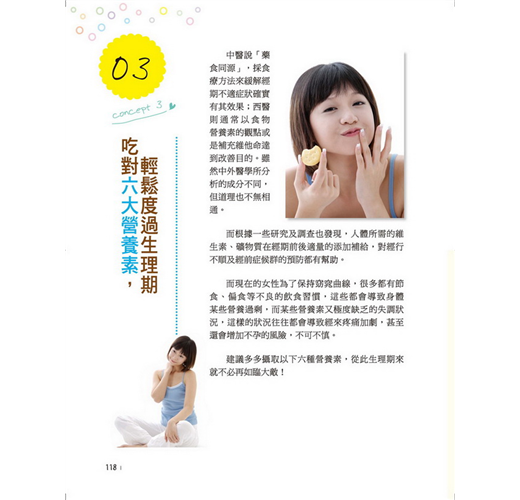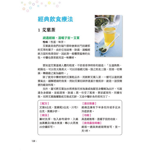 跟著本書,分辨自身體質、吃對食物補健康,另有經典進補茶湯23種,讓你透過正確飲食來改善經痛、調理體質。