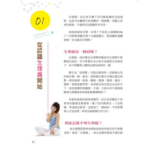 本書讓你從瞭解自身體質、症狀及各種食物的特性開始,學會攝取正確食物營養,達到調理體質、根除經痛的作用。