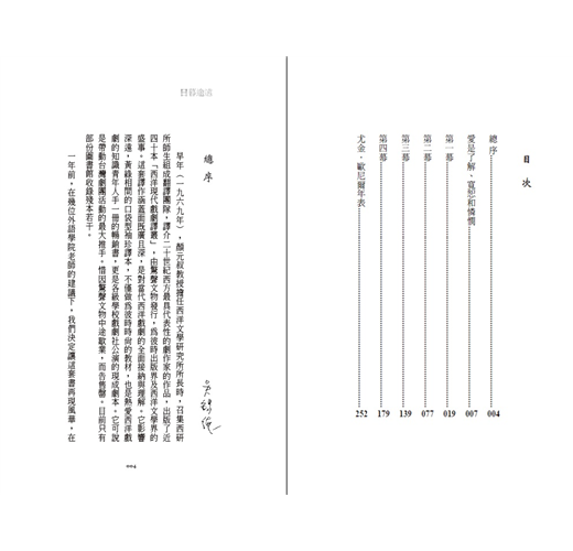 一九六九年顏元叔教授擔任西洋文學研究所所長時,召集西研所師生組成翻譯團隊,譯介二十世紀西方最具代表性的劇作家的作品,出版了近四十本「西洋現代戲劇譯叢」,由驚聲文物發行,為彼時出版界及西洋文學界的盛事。這套譯作涵蓋面既廣且深,是對當代西洋戲劇的全面接納與理解。它影響深遠,黃綠相間的口袋型袖珍譯本,不僅做為彼時時尚的教材,也是熱愛西洋戲劇的知識青年人手一冊的暢銷書,更是各級學校戲劇社公演的現成劇本。它可說是帶動台灣劇團活動的最大推手。惜因驚聲文物中途歇業,而告售罄。目前只有部份圖書館收錄殘...