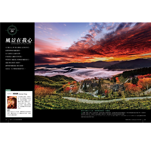 ※「隨拍」、「人文」、「婚紗」、「藝術」、「風景」、「極光」、「空拍」、「縮時」、「紅外線」&「夜曝」,各領域好手齊聚一堂,提供最精闢、原創的攝影新思維!