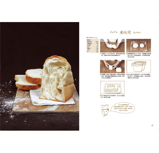 烘焙新手免擔憂,本書詳盡的步驟圖解,讓你看圖跟著做不出錯。除了清晰圖示,還有獨家插畫表現,讓你學做麵包的過程中更是充滿樂趣,帶著輕鬆的心情一一學會。