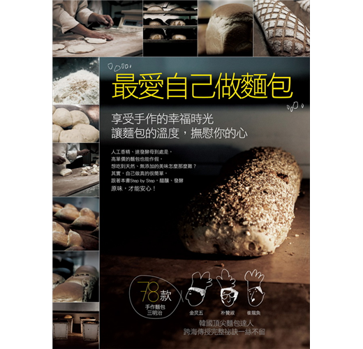 金炅五、朴贊淑、崔龍奐這三位傑出烘焙師,在年輕的時候就熟識,並常聚在一起,一直以來,專注在烘焙上,對於撰書很有興趣。當我閱讀完最近出版的《最愛自己做麵包》後,書中的內容品質比預期的還要好,對各種麵包的製作流程、技巧都有詳細的解說。