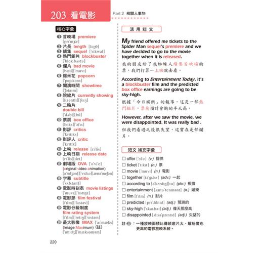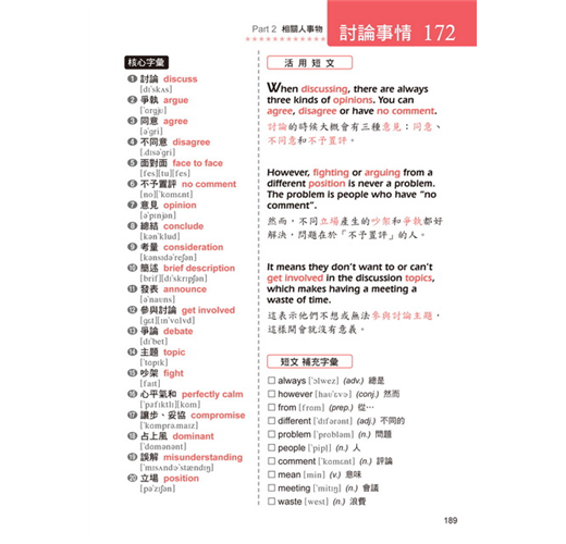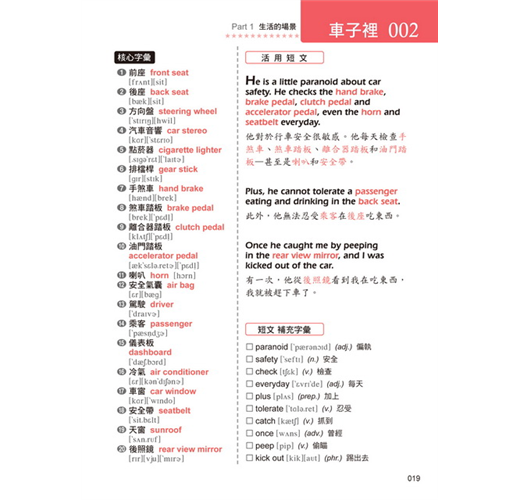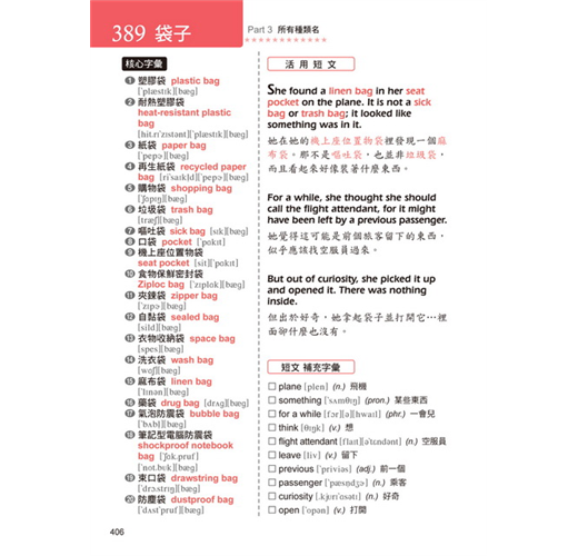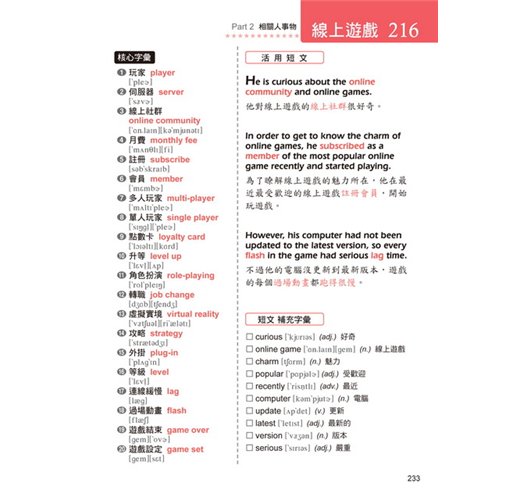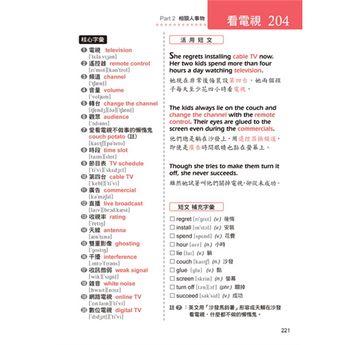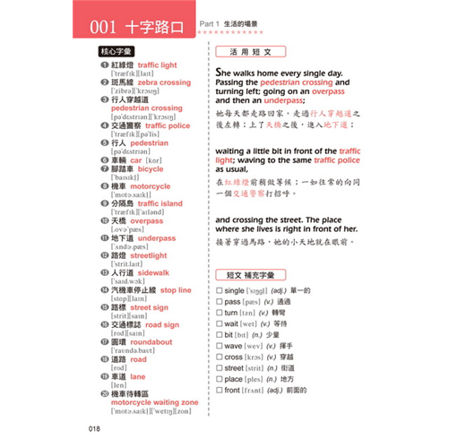 ◎ 每一主題包含:20個核心字彙 + 1篇活用短文 + 10個補充字彙