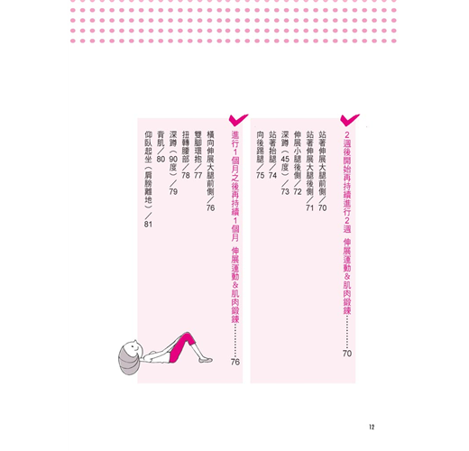 兩週後開始再持續進行兩週 伸展運動&肌肉鍛鍊