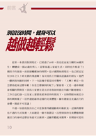 因此,藉由這本書,我除了想跟大家分享一路走來的親身健身經驗,以及超簡單運動養成、不挨餓頂級美食享用方式,教你怎麼改變自己的體質,擁有人人羨慕的活力健康好身材。而且,我想要帶給大家的運動觀念,不是待在健身房裡做訓練,或者只是藉由一些健身器材,達到運動的目的而已。我想要告訴你的是,透過健身運動,可以堅強你的意志、打開你的視野、豐富你的人生、活絡你的人際關係、從中塑造出領袖特質與能力,它會進而改變人生。這,才是我想透過運動帶給大家前所未有的體驗。只要你跟著這本書教授你的觀念與動作,一步一步慢慢跟著做,你絕對能從中受益,擁有好身材、好體力與美好的人生。