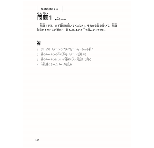 《日檢N1聽解總合對策》附1回「模擬試卷」可在家進行模擬考試,加強臨場訓練!