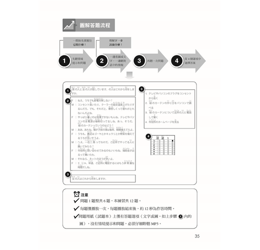 《日檢N1聽解總合對策》新增圖解答題流程,輕鬆掌握答題節奏。