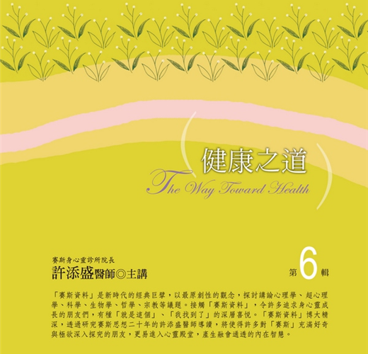 這套「健康之道」有聲書,是許添盛醫師以生活化、輕鬆、簡白的方式,傳譯「賽斯心法」的精彩原音重現,是熱愛新時代賽斯資料、追求身心靈健康、尋求身心安頓的朋友,不可錯過的精神饗宴。後期集次陸續推出中,敬請期待!