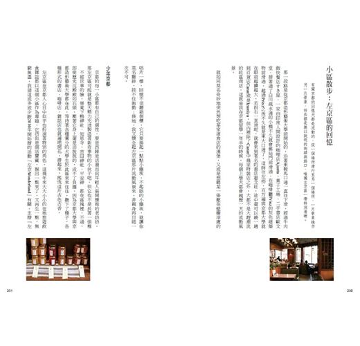 京都藏著無與倫比的微小趣味以及美麗,她的美麗不只在於她的古色古香,或是保留完好的古蹟,還在於這地方流露的尊嚴與傲骨。她的微小趣味,散佈在整座城市,需要多一些的時間細細品味。