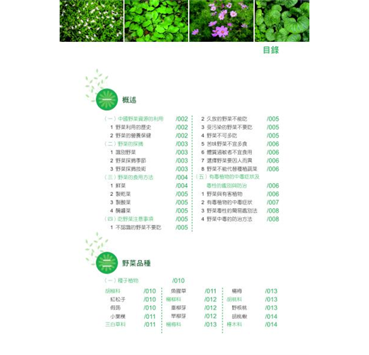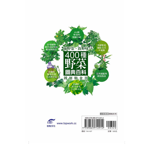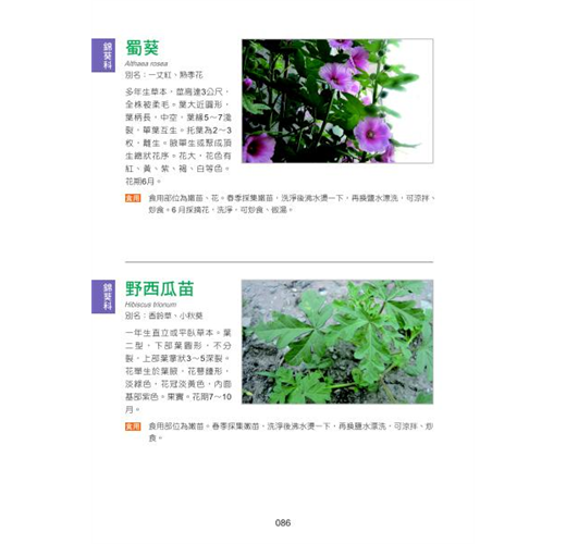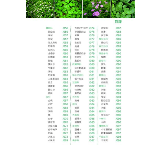 致力於研究野外植物,不斷的更新知識,包括植物來源、學名俗名、分佈區域、形態識別、成分、功效、食用部位、食用方法及屬性科別,直觀扼要,是認識野菜的入門寶典。盼能使人們正視天然資源,對野生植物有更進一步的了解。