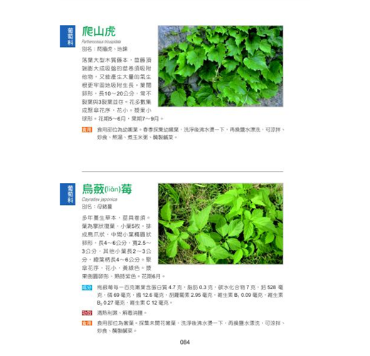 台灣是個資源豐富的美麗寶島,四周環海,山脈眾多,不僅山光水色一覽無遺,山珍海味也是讓你目不暇給。野菜摘四方,那些野生的天然植物不僅供觀賞、能食用、亦是中藥材的聖品。