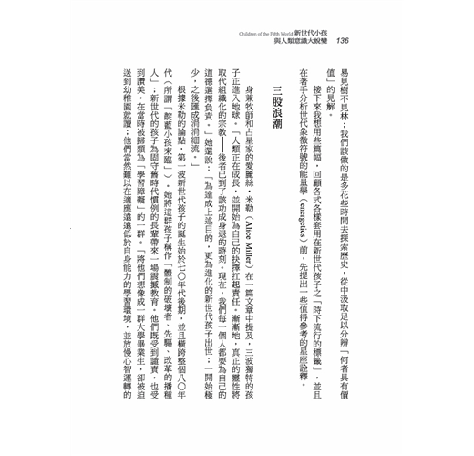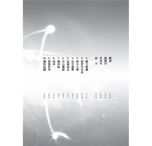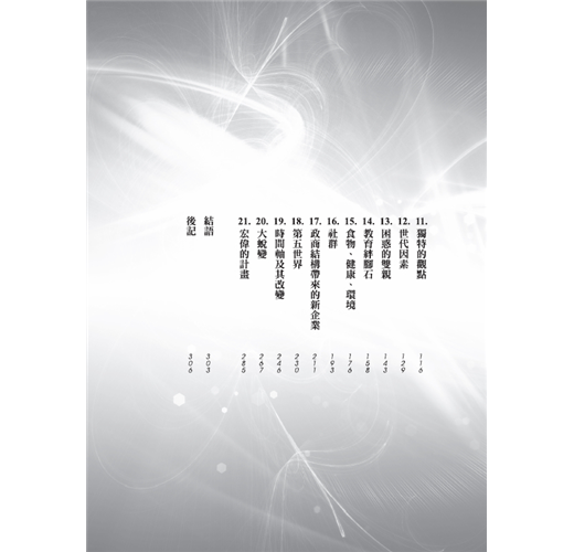 ※揭示了這群新世代小孩如何在政治、社會、商業、宗教、文化上,為人類社會帶來巨大變革,為何全球都在發生「占領行動」,以及未來人類意識和社會演化的進程。