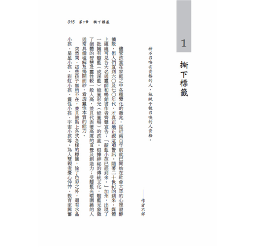 ※為這群獨特而偏離社會常態的新孩子之父母親提供了具體的教養方向,建議雙親以及學校教育者該如何去了解這群孩子、以及和他們相處。