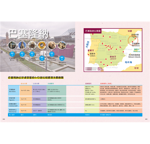 巴塞隆納 Barcelona、菲格列斯 Figueres、奎爾紡織村 Colonia Guell、蒙瑟瑞特山 Montserrat