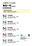 《大家學標準日本語 初‧中‧高》是學日語必備的127個文型文法指南(具體學習目標),而《每日一句 全系列五冊:生活實用篇、商務會話篇、旅行會話篇、談情說愛篇、生氣吐槽篇》則是「將必學的文型文法落實於真實會話的具體教學」。