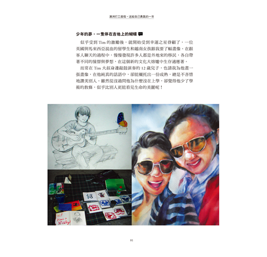 提著畫具走上人來人往的布里斯本街頭,鋪下地毯,等候客人上門。客人的要求稀奇古怪,腳踏車輪、露營車彩繪……還被堅持要在漂亮地方幫他畫窗簾的大叔,用「龍貓公車」載到超美的澳洲祕境,見到海豚在浪花上飛翔。
