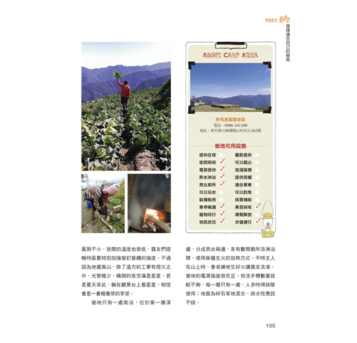 3. 豐富活動,露營絕不無聊:露營,除了能看到四季流轉的絕美景色與豐富自然生態之外,大人、小孩還可以玩什麼?翻開本書就知道!