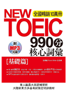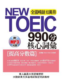 「NEW TOEIC990分 核心詞彙---基礎篇」是為了有效率地提升NEW TOEIC應試者的英語單字理解力、運用力以及英語的綜合能力編輯而成。全部的字彙都附有例句一起學習,有很高的加分效果。至於例句的選擇方向是根據NEW TOEIC的宗旨和個人程度及狀況的不同來分類,都是具有實用性及機能性的句子。