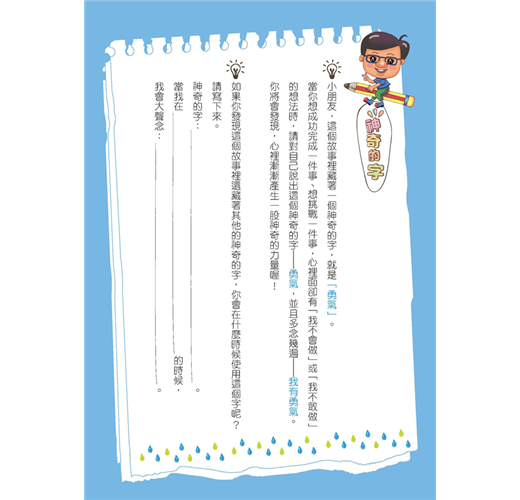 ★故事主題圍繞著夢想、勇氣、自信、冷靜、耐力、毅力、執行力等,激勵孩子成為「生活行動家」,勇敢實現遠大的夢想。