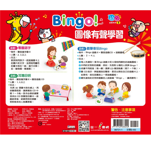 本產品收錄30種生活中的聲音,運用彩色圖卡和遊戲卡玩聲音遊戲,希望藉著本產品培養孩子們以下能力: