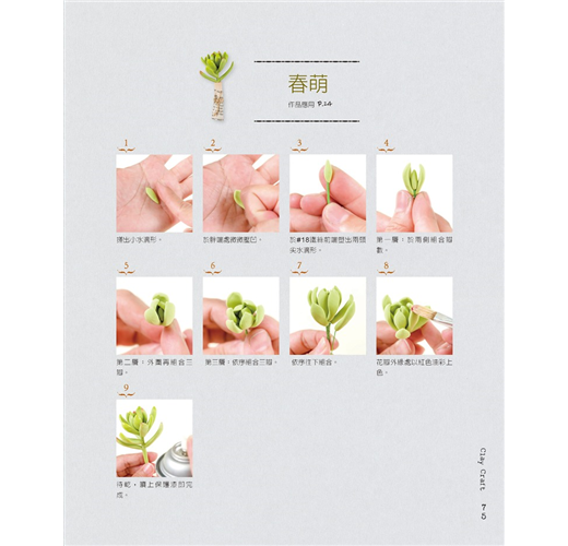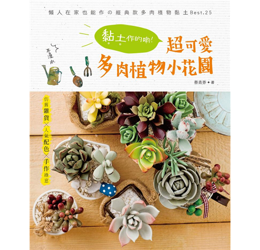 黏土職人──蔡青芬老師挑戰全新創意,以「多肉植物」為主題,設計出24款手作人最熟知的多肉品種,她以超輕黏土揣摩植物的神情、特色及外在,以彩色圖片親自示範作法,從最基礎的調色方法、黏土介紹,以簡單易作、快速上手的教學,讓不曾玩過黏土手作的初心者,也能看書自學立即作出最吸睛的多肉植物黏土手作。