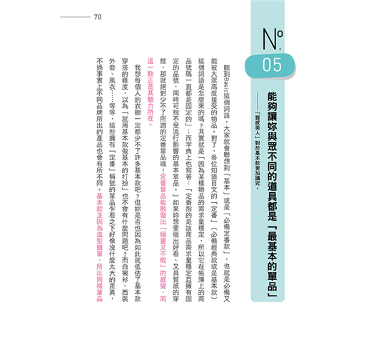 就算翻閱時尚雜誌也很難掌握重點的「時尚穿搭的How to」與「磨練品味的方法」,如果以做菜來比喻的話,就是熬煮高湯的方法;而若是以化妝來打比方,就是打好完美底妝的方法!