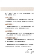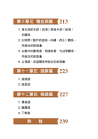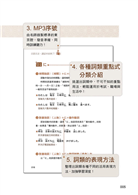 2. 方便性:清楚條列各詞性的常用表現,遇到不懂的文法時,只要隨手一翻,立刻就能查詢到,節省您翻字典的時間,保證讓您迅速掌握基礎文法!