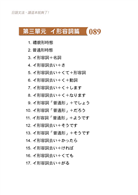 1. 全面性:將日語中非學不可的「助詞」、「名詞」、「形容詞」、「疑問詞」、「副詞」、「指示詞」、「接續詞」、「動詞」、「複合詞」、「接辭」、「敬語」等十二大詞性,依主題循序漸進分類,從最基本的「助詞」,到高階的「敬語」文法,所有內容一網打盡!