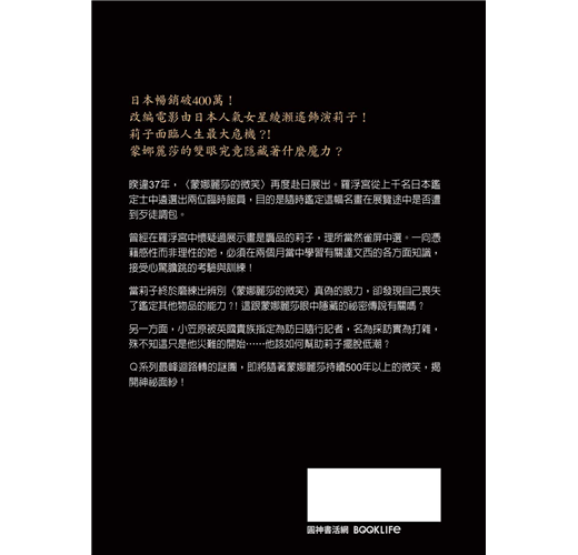 當莉子終於磨練出辨別〈蒙娜麗莎的微笑〉真偽的眼力,卻發現自己喪失了鑑定其他物品的能力?!這跟蒙娜麗莎眼中隱藏的祕密傳說有關嗎?