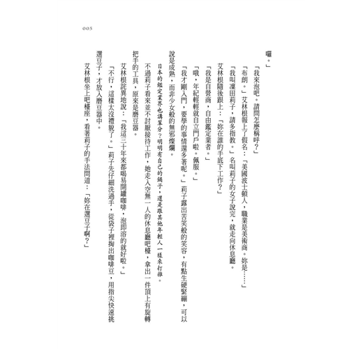 實際上,她對咖啡豆的好壞評斷幾乎完美無瑕。莉子花了大把時間泡出來的咖啡,沒有一絲劣質的苦澀味,也沒有酸味,只有渾厚扎實的好味道。我有多久沒喝過這麼好的咖啡了?