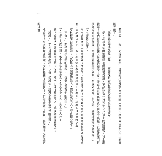 「是。品川車站附近屬於羽田機場空域,不能建造一百五十公尺以上的建築物。我上網搜尋了專門給富裕外國人居住的摩天大廈,發現品川區與橫濱市內各有幾座,但都落在羽田機場方圓九公里內,高度受到航空法限制。都內郊區唯一的例外,就是這座橫濱總裁塔。」