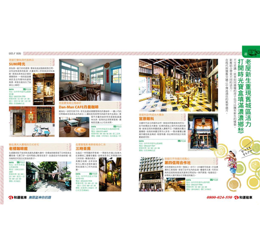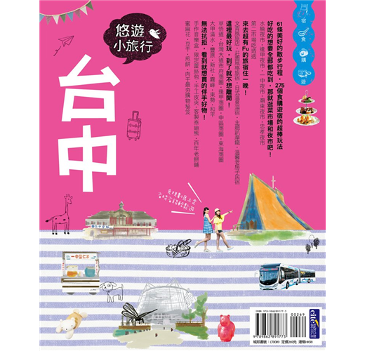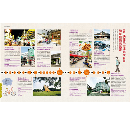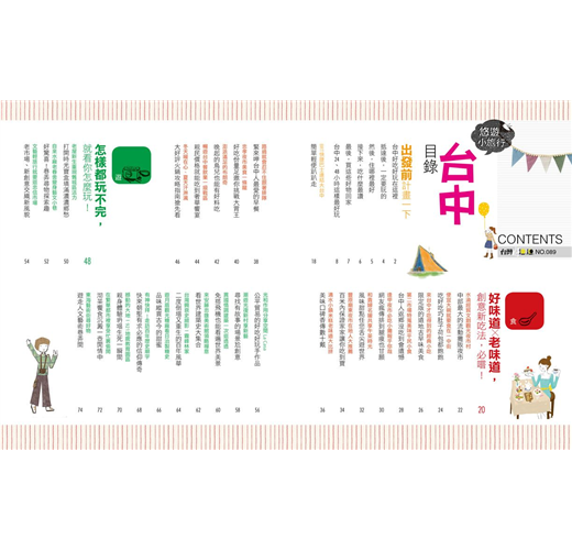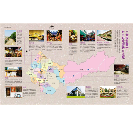 在台中市區漫步可以輕鬆體驗樂活旅行的意義,台中美食有好口碑、老味道更有創意新吃法,融合了南來北往的各式美味,小食、眷村味或精緻奢華的異國料理,輕鬆享受澎湃的美味大拼盤。台中觀光資源豐富,老屋的風華歲月、多樣的藝文小店、明媚的自然風光,什麼都有,只怕時間不夠用!到台中住一晚,不論是隱藏在城市裡獨樹一格的特色民宿、具有文青氣息的設計旅店,或是豪華氣派的汽車旅館,旅店不再只是休息,也是旅途中一處景點。來台中一定要帶走的好物,值得收藏的雋永回憶!在地人用心經營的好物與好味道,值得收藏,即然到台中就千萬別空手而回了!