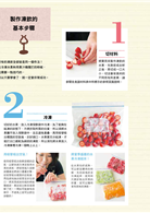 本書作者擁有日本「Active蔬果達人」認證資格,內容以其所企畫的水果凍飲專賣店菜單為主,共有122道飲品,每一杯都有滿滿的健康美麗元素
