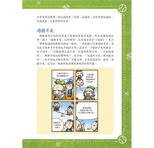 如同本集《棒球優等生》介紹各項運動的好處:參與不同運動項目可鍛鍊出不同的特長;均衡的發揮各項優勢、平衡發展才能有最好的表現;運動本身並非為了參與競賽,而是自己與自己的競爭等。在文中教練也曾提到:「今天只要比昨天進步就行了!」若能讓孩子藉此學習到凡事按部就班、積極進取並能體會過猶不及、不急功近利的精神,相信這對孩子而言將會是終身受用的學習態度。希望您的孩子也能透過閱讀這一系列的《棒球優等生》而有同樣的收穫。