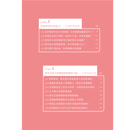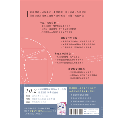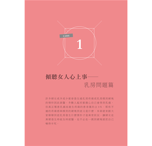 本書就像是寫給諸位女性的旅途指南,透過仇思源醫師的專業觀點,提醒所有女性一路上可能遭遇的難題,做到認識小病、預防大病的準備。一旦狀況出現時能繞道而行,或是及早尋求道路救援,讓每位美麗的旅人都能平安順遂的抵達終點。