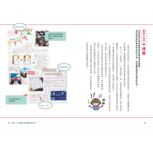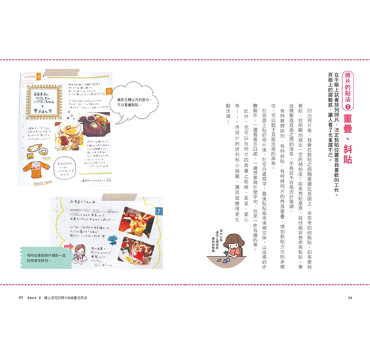 ●「版面安排」:照片正貼、斜貼、分隔線、文字量、甚至畫上四格漫畫……