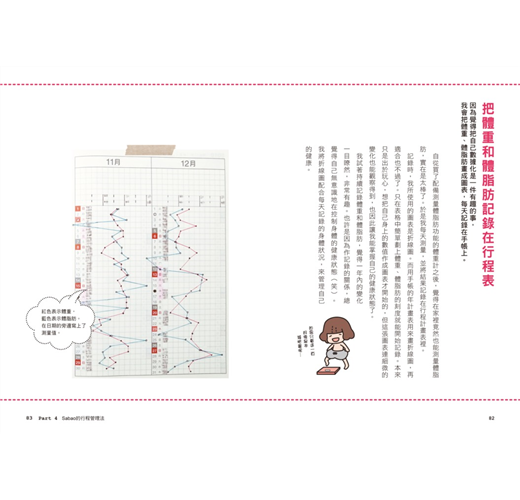 →用行事曆表格做「折線圖」,紀錄體重、體脂肪、睡眠時間……手帳也能成為「自我健康管理手冊」。