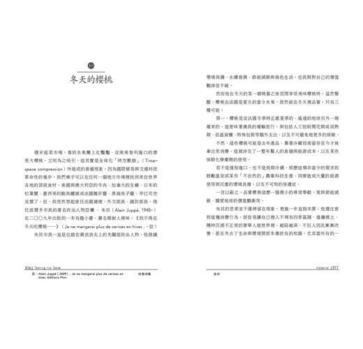 這本書裡收錄的,絕大部分是過去一年裡在香港《明報》世紀版專欄「味無味集」所發表的文章。當初設定的主題是飲食,但在香港談飲食的人可多了,總得想辦法發展出自己的特色。選用這個欄名其實反映了兩個期待,一是能在尋常料理上萃取出不尋常的味道,多少有點「於無聲處聽驚雷」的奢望;另外也想呈現個人在中華文化與法國文化之間擺盪的生命經驗。因為,一個文化集體記憶裡的「有味」,常常在另一個文化裡被認為「無味」,品味是文化,是被教育而來的,味與無味看似對立卻非關對錯,尤其值得對照,就像我很欣賞的美國記者與...