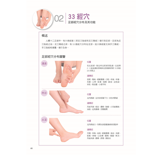 ◎圖文對照,輕鬆易懂:詳細完整介紹了足部穴位圖,足部反射區圖和真人示範。