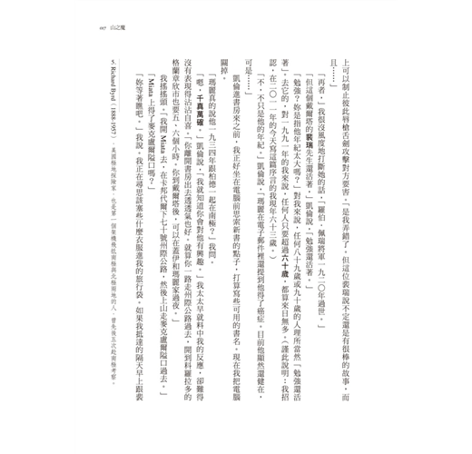「這不是壞話。」大狄肯說,「只是實話。馬洛里跟我一起參加前兩次遠征時,經常丟三落四,襪子啦、刮鬍用具啦、帽子啦、衛生紙啦。他個性就是這樣。」