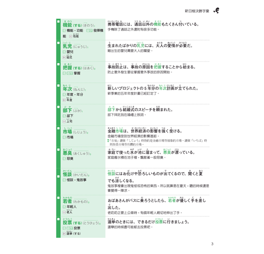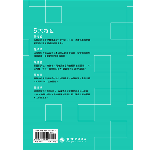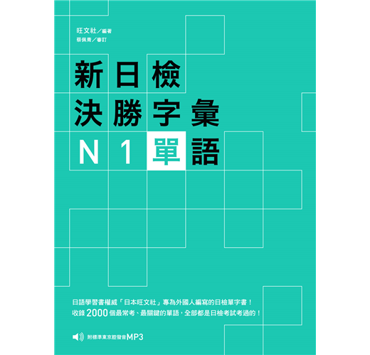 為幫助日語學習者快速掌握日檢N1考試的常考單語,日語學習書權威「日本旺文社」從過去五年的日檢考題中選出2000個最常考的單語,編寫出《新日檢決勝字彙:N1單語》一書。