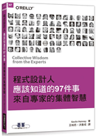廣集專家智慧精粹,讓你學習每位程式設計人所應該知道的一切。無論你是使用哪一種程式語言,透過書中 97 位專家所貢獻的經驗建議和智慧精要與極具實用的訣竅,以最簡潔有力的方式與全新的思維,解決以往難以處理的窠臼。你的專業能力將因此提升,實踐方式也能更適切務實。
