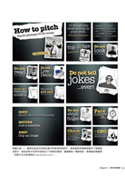設計並非關於目眩神迷、目不暇給或是華麗不實。設計是關於清楚、證據、吸引和有故事性。讓自己持續不斷練習,終會找到自己的有效簡報方式。