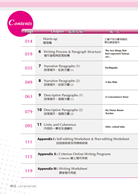 這一本書與坊間其他的英文寫作書,最大不同的地方在於,本書強調在學習寫作的技巧同時,必須要給予學生適度的引導寫作練習。也就是說,在每一課當中所強調的動詞、活用句型以及寫作技巧,都會設計在隨堂練習之中,以強化學生的寫作知識應用。每一章的設計分為五個部分:要點、範文、寫作策略、句型結