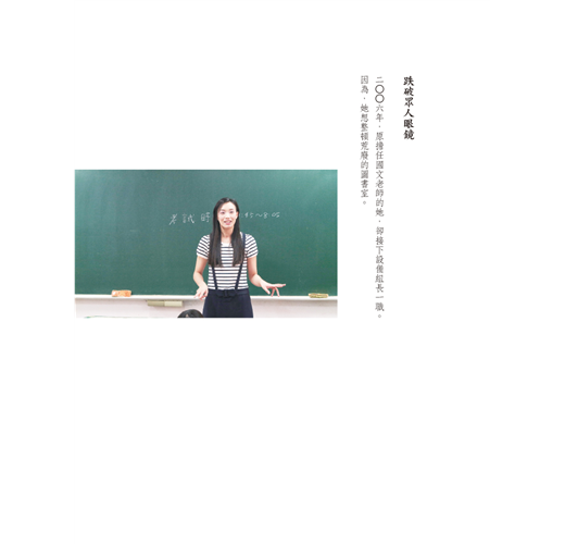 從「大膽改變新書採購流程」(開放師生寫新書推薦單)到「主動出擊,送書到學生面前」(製作「班級行動書箱」),以及以「自由分享,取代紙上感想」(閱讀K歌大賽),規劃「動漫區」及與誠品、博客來合作等跳脫刻板閱讀的各種創意活動,她成功翻轉一翻開書就睡著的孩子,甚至連體育班孩子,都成為全國小論文寫作的常勝軍。