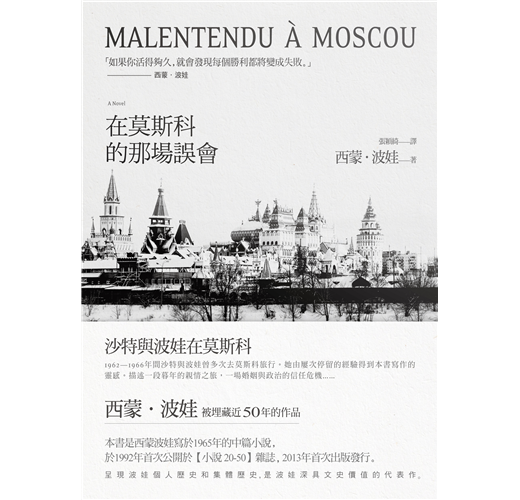 《在莫斯科的那場誤會》寫於一九六六至一九六七年間,為中篇小說創作,原預定收錄於《破碎的女人》(La Femme rompue)小說選集,最後卻捨棄,以致本作品就此塵封三十年,直到一九九二年才首次公開,刊登於《小說20-50》雜誌(Roman 20-50)。本書是唯一法文直譯的中文全譯本,於華文世界首度出版,並收錄數幀相關資料照片,是喜愛波娃的讀者不可多得的重要參考,彌足珍貴。